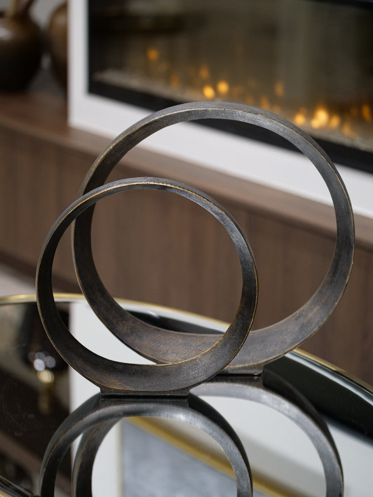 • A Gorgeous set of 2 dark toned, smooth circular hoop décor finished with a soft gold smudging.