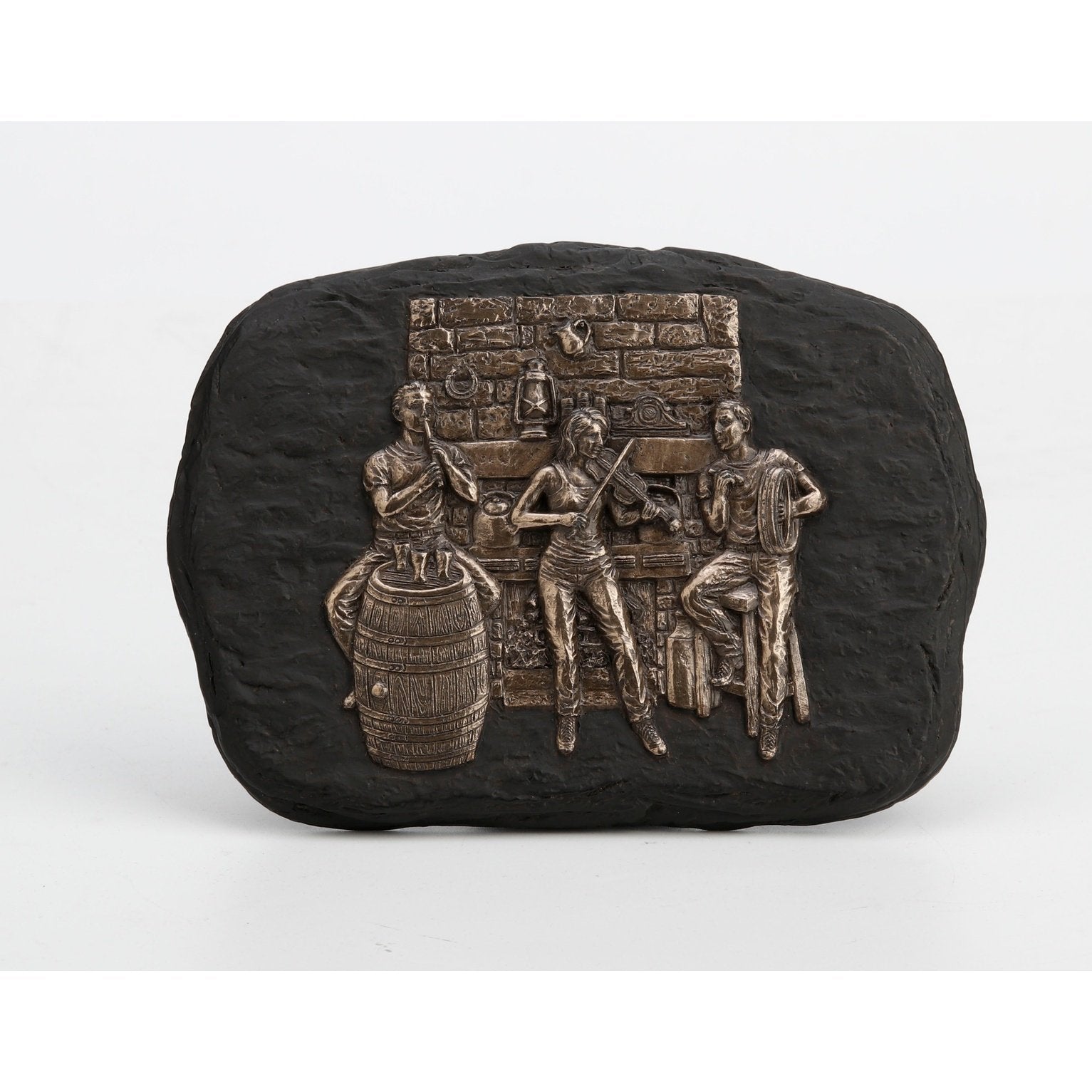 - Una hermosa placa decorativa que se puede colgar o colocar en un estante y que representa una sesión tradicional de músicos irlandeses.