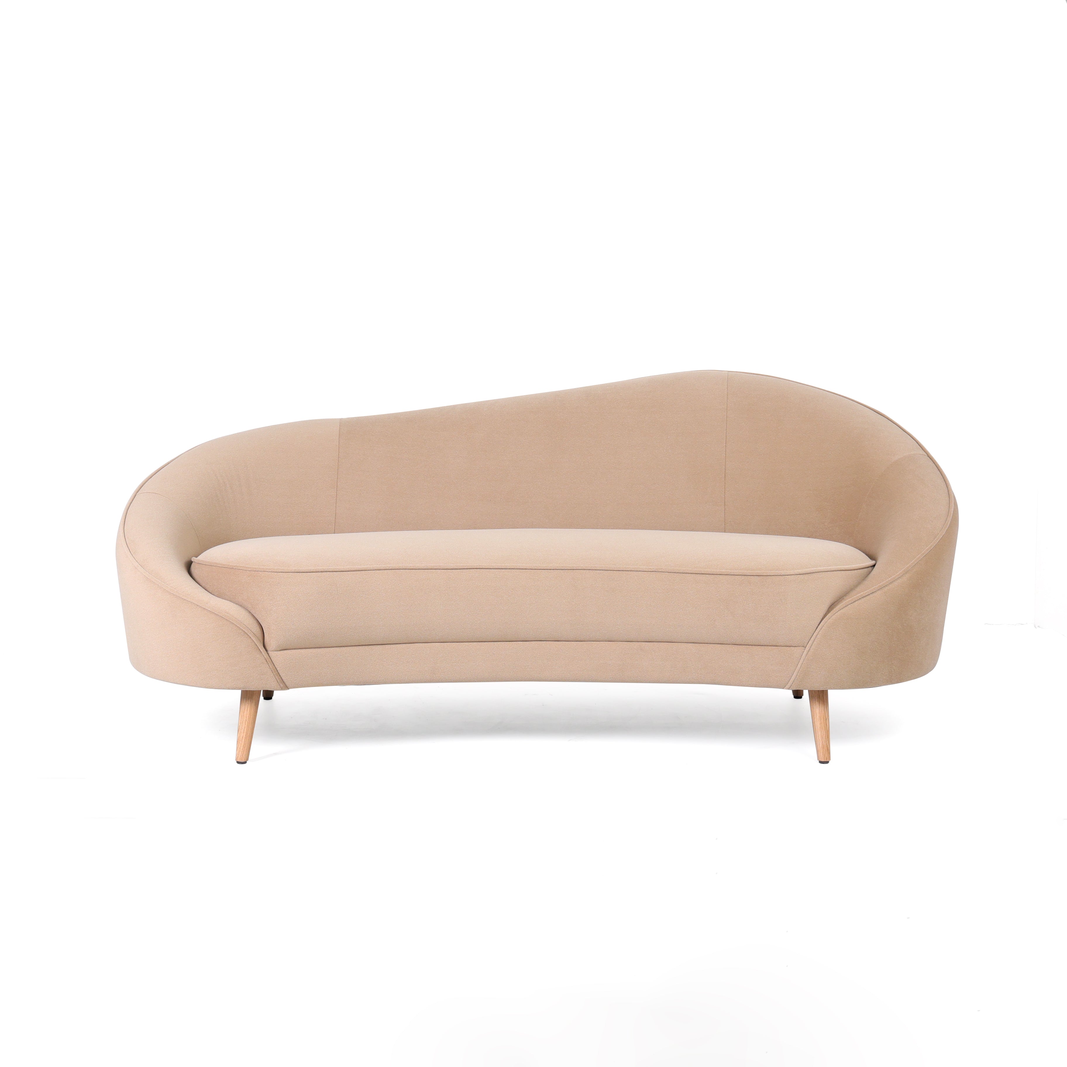 The Taliba Curved Sofa is a statement piece defined by its flowing silhouette and inviting proportions. Upholstered in a soft neutral fabric the curved back and seat create a sense of movement and comfort that feels both modern and timeless. The gently sloping arms enhance the sculptural quality of the design.
