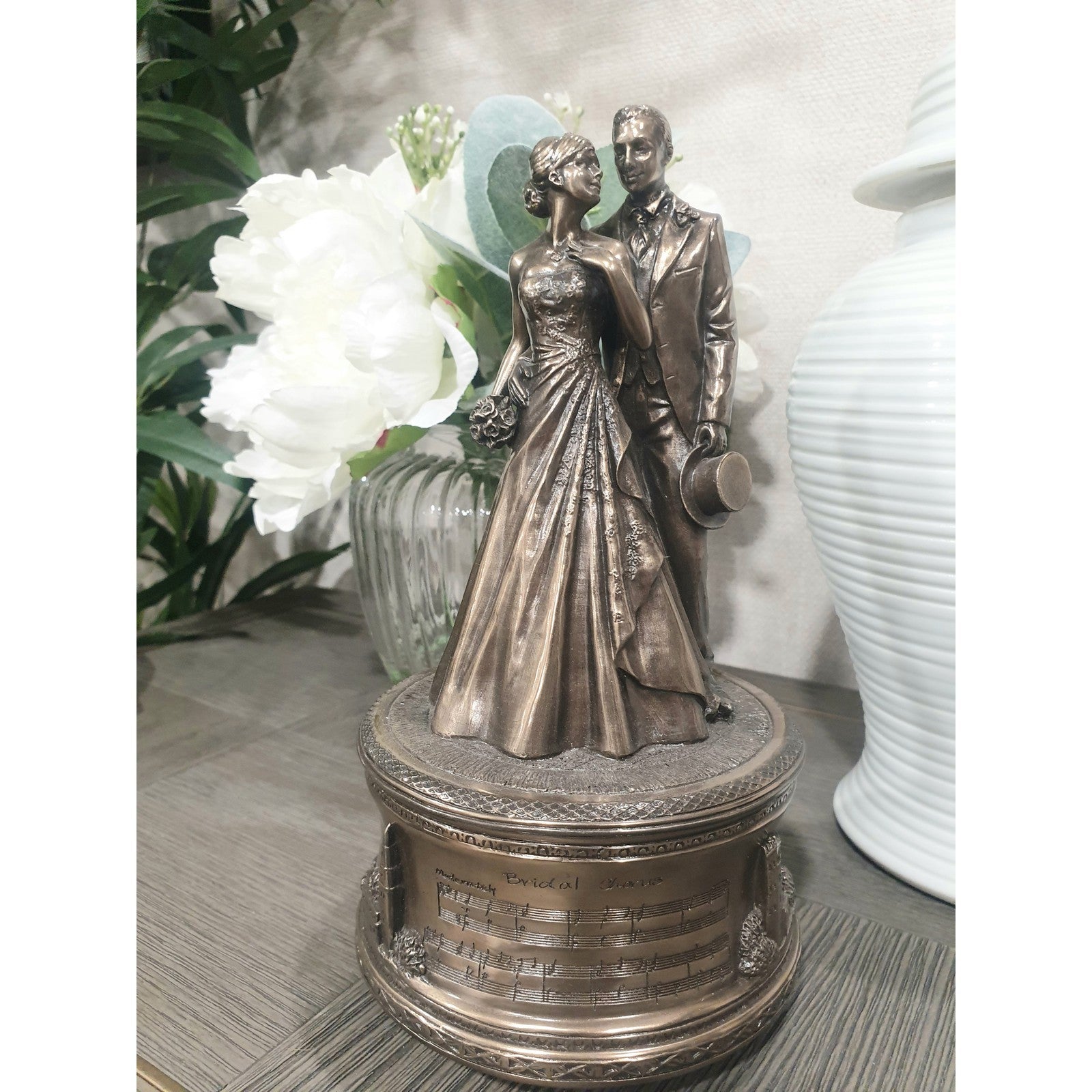 - This music box rotates to the tune 'Here comes the bride'