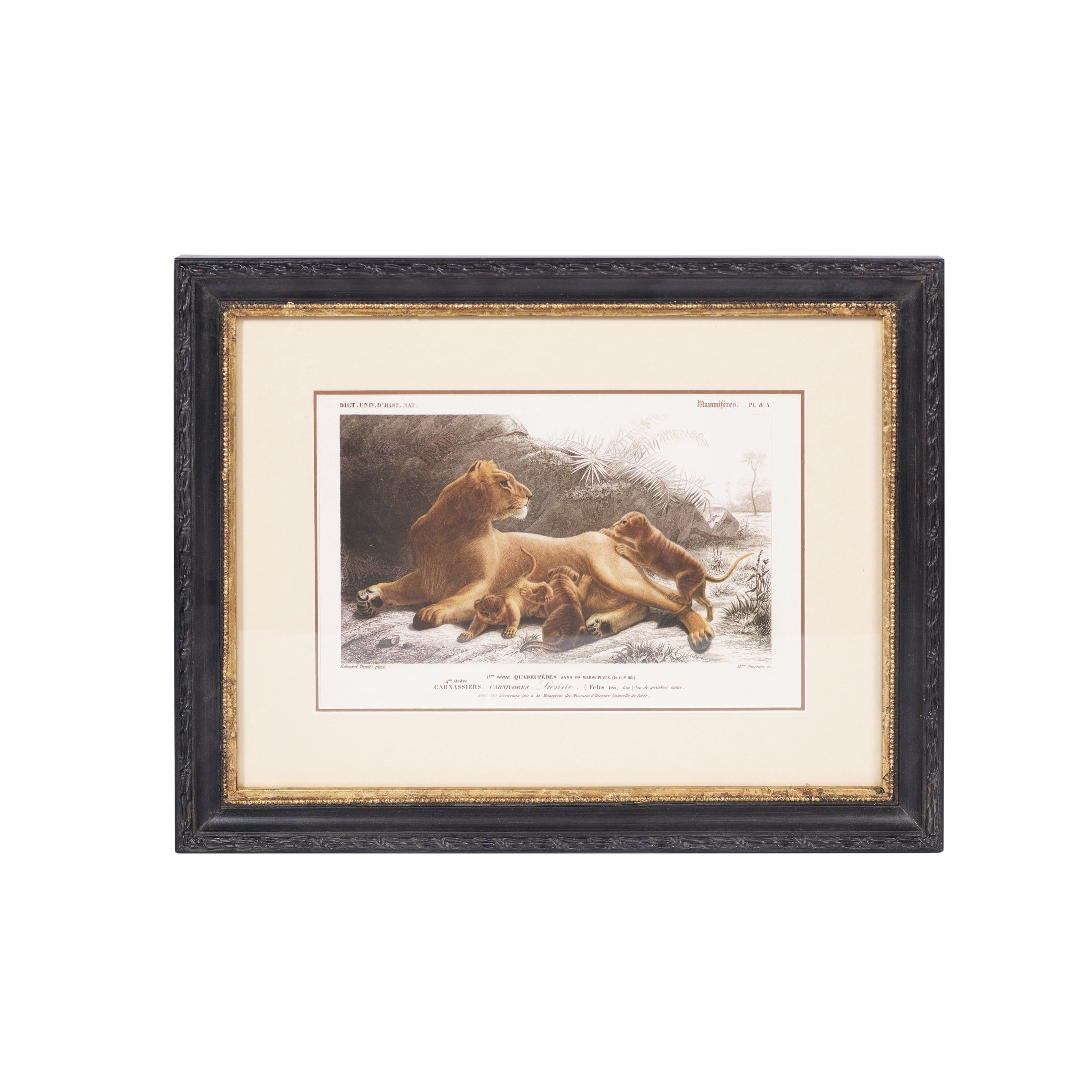 Chic framed lion portrait with black and gold finish, ideal for luxury and bold interiors. Display as a gallery wall or standalone piece for artistic impact. Complements minimalist, rustic, or safari-themed rooms.