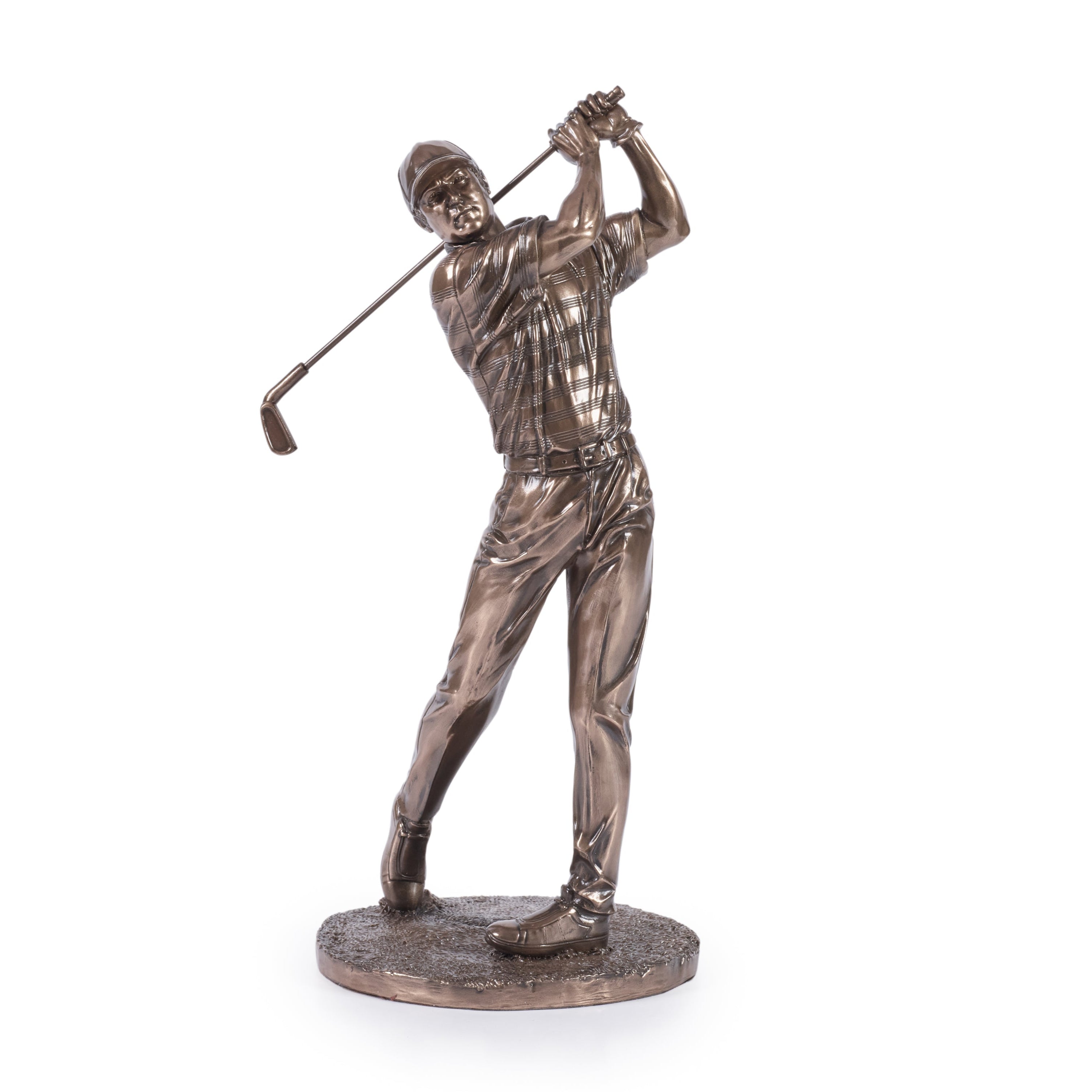 Capture the elegance and power of the golf swing with this dynamic sculpture. The golfer is shown in mid-swing, making it a striking piece for offices, trophy displays, or any golf lover's collection.